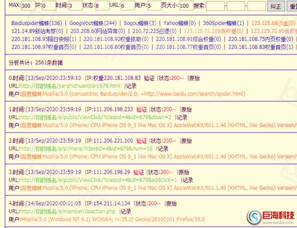 以上就是安康網(wǎng)站推廣分享的如何分析網(wǎng)站日志?蜘蛛日志分析方法的全部內(nèi)容,蜘蛛網(wǎng)站日志分析勢在必行,通過對網(wǎng)站的調(diào)整來正確引導搜索引擎Spider的爬行,通過網(wǎng)站日志中的數(shù)據(jù)記錄,可以地診斷我們的網(wǎng)站是否處于健康狀態(tài)。好了,就說這么多吧,如果您還有任何方面的SEO問題,隨時歡迎咨詢巨海科技SEO顧問。
